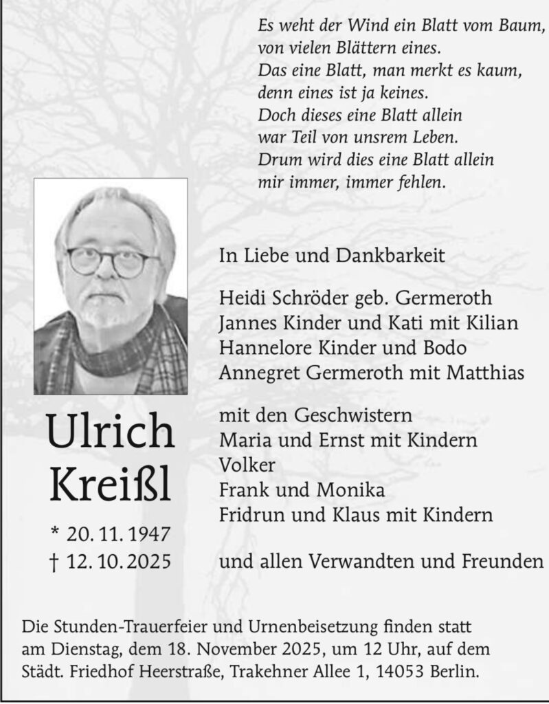 27/10/2025 Kommentare 0 Ulrich Kreißl Wir haben einen guten Freund und ein engagiertes Mitglied unseres Vereins verloren.